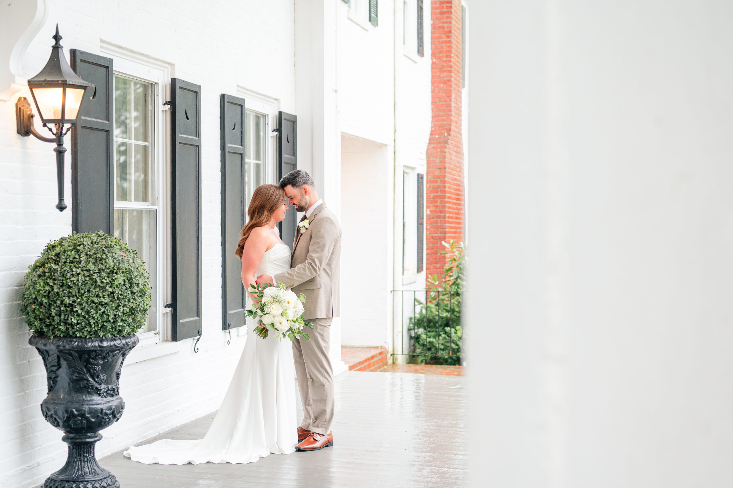 When we say rain, we don’t mean a little drizzle—we’re talking sheets of rain pouring down all day long. Thankfully, Hollyfield Manor has a wide, covered front porch with giant columns that gave us just the right amount of protection for portraits. Even with the constant downpour, we were able to capture stunning photos that looked like the rain wasn’t as heavy as it was!